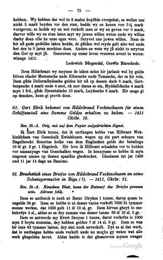 Keywords: Briefwechsel Hildebrand Veckinchusen 075.jpg Hildebrand Veckinchusen Briefwechsel eines deutschen Kaufmanns im fünfzehnten Jahrhundert http //books google com/books 3fid 3d8chAAAAAIAAJ printsec 3dfrontcover dq 3dVeckinchusen hl 3dde century 14 Wilhelm Stieda Ed Author died more than 70 years ago - public domain PD-old Briefwechsel Hildebrand Veckinchusen |