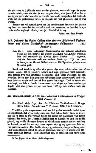 | Keywords: Briefwechsel Hildebrand Veckinchusen 363.jpg Hildebrand Veckinchusen Briefwechsel eines deutschen Kaufmanns im fünfzehnten Jahrhundert http //books google com/books 3fid 3d8chAAAAAIAAJ printsec 3dfrontcover dq 3dVeckinchusen hl 3dde century 14 Wilhelm Stieda Ed Author died more than 70 years ago - public domain PD-old Briefwechsel Hildebrand Veckinchusen |