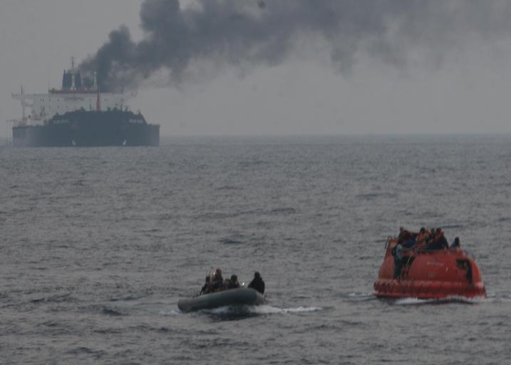 | Keywords: Brilliante Virtuoso rescue -e.jpg Brilliante Virtuoso rescue Original caption 110706-N-L7704-063 GULF OF ADEN July 6 2011 U S Navy Sailors from guided-missle cruiser USS Philippine Sea CG 58 approach a life boat from M/T Brilliante Virtuoso July 6 Brilliante Virturoso ™s crew abandoned ship due to a fire onboard http //www cusnc navy mil/articles/2011/073 html 2011-07-06 U S Navy photo by Chief Intelligence Specialist Raynald Lenieux <gallery>File USS Philippine Sea rescues Brilliante Virtuoso crew jpg</gallery> PD-USGov Aboard USS Philippine Sea CG-58 Sea rescue Brilliante Virtuoso ship 1992 Ships' lifeboats |