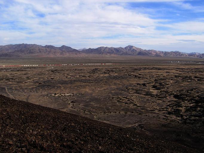 | Keywords: Bristol mountains.jpg Southeast end of the Bristol Mountain Range in the Mojave Desert of California United States of America The photo was taken from Amboy Crater looking north The town of Amboy can be seen on the right side of the image Own 2005-12-29 Eric Polk Public Domain Amboy California Bristol Mountains Mountain ranges of the Great Basin |