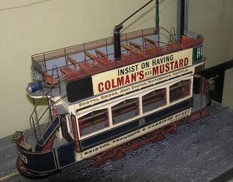| Keywords: Bristol tram model arp.jpg Please note to avoid repetition of the word Bristol all information and dates below are about City of Bristol trams only The information is from the signboard next to the model so should be accurate Scale model of an 1899 Bristol Tramways and Carriage Company Limited electric tram number 160 in the Industrial Museum Bristol England <br> Horse-drawn trams were introduced in 1875 but had a maximum speed of 6 mph <br> Electric trams were introduced in 1895 At the peak of their use in 1908 Bristol had 233 in the fleet running on 31 miles of track Electricity was picked up from overhead wires this tram had two GEC 27HP electric motors <br> Petrol buses started in 1906 but did not fully take over from trams until the final electric tram service ran in 1939 In 2007 the Bristol Industrial Museum was permanently closed for conversion to the Museum of Bristol The exhibits are in storage Photographed by Adrian Pingstone 2004-08 Photographed by Adrian Pingstone Arpingstone 51 26 51 9 N 2 35 52 7 W Bristol Tramways Colman's mustard Tram models from above |