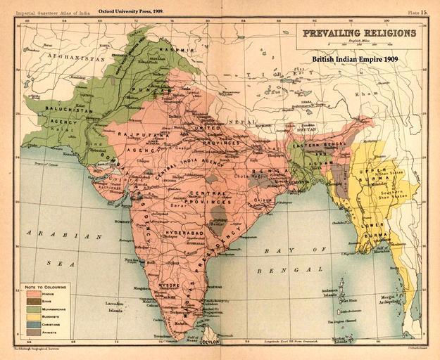 Keywords: Brit IndianEmpireReligions3.jpg Map Prevailing Religions of the British Indian Empire 1909 <br> Key ;Pink Hindu ;Green Muslim ;Diagonal lines Sikh small area in Punjab ;Yellow Buddhist Burma and Chittagong Hill Tracts ;Blue Christian Goa ;Purple Animist several inland hilly areas Ceylon and the Andaman islands are not mapped The Imperial Gazetteer of India Oxford University Press 1909 Scanned from personal copy and annotated by me <font color B8860B >Fowler fowler</font><font color 708090 >«Talk»</font> 04 16 19 March 2007 UTC 1909 John George Bartholomew File India religion map 1909 en jpg old map 1920 original upload log page en wikipedia Brit_IndianEmpireReligions3 jpg 2007-03-19 04 16 Fowler fowler 1650×1275×8 338398 bytes <nowiki>Map Prevailing Religions of the British Indian Empire 1909 from the Imperial Gazetteer of India Oxford University Press 1909 Scanned from personal copy and annotated by me ~~~~ PD-old-75 </nowiki> The Imperial Gazetteer of India Buddhism distribution maps of India Christian distribution maps of India Hindu distribution maps of India Islam distribution maps of India Jainism distribution maps of India Judaism distribution maps of India Animism 1909 maps of India |