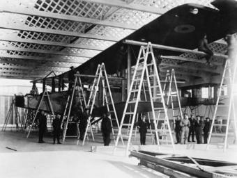 Keywords: British Aircraft Production in the First World War Q67850.jpg British Aircraft Production in the First World War<br/> Handley Page 0/400 bomber under construction Serial number F5349 Ford Junction Sussex American official photographer 1918-10-24 First World War http //media iwm org uk/iwm/mediaLib//331/media-331622/large jpg Q 67850 205315063 This image was created and released by the Imperial War Museum on the http //www iwm org uk/corporate/privacy-copyright/licence IWM Non Commercial Licence Photographs taken or artworks created by a member of the forces during their active service duties are covered by Crown Copyright provisions Faithful reproductions may be reused under that licence which is considered expired 50 years after their creation American First World War Official Exchange Collection Associated people and organisations Royal Air Force Royal Flying Corps Associated keywords Aerial Warfare Military Aviation photographs PD-USGov American First World War Official Exchange collection Images uploaded by Fæ RAF Ford
