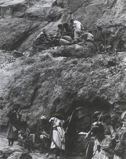 | Keywords: British Mercenaries in North Yemen Civil War.jpg en Photograph taken in North Yemen showing 2 British mercenaries assisting Yemeni royalist rebels to set up a Russian heavy machine gun for use as an anti-aircraft weapon in the North Yemen Civil war of 1962-1967 Other rebels armed with 303 and other old rifles can be seen at the bottom of the photo in front of one of the caves used by the British 1962-1967 Scanned from Hart-Davis Duff The War That Never Was Arrow Books 2012 author Custom license marker 2012 09 26 PD-Yemen Uploaded with UploadWizard North Yemen Civil War Mercenaries Caves in Yemen |