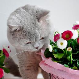 Keywords: british shorthair lilac grey cat easter bellis flowers pet easter cat leonardo easter bunny so dear cute