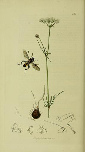 | Keywords: Britishentomologyvolume8Plate425.jpg en John Curtis British Entomology 1824-1840 Folio 425 Diptera Xylota bifasciata Chalcosyrphus bifasciatus Four-spotted Hover-fly The plant is Conopodium majus Common Earth-nut http //www biodiversitylibrary org John Curtis 1836 PD-old-100 British Entomology Volume 8 John Curtis Chalcosyrphus bifasciatus Conopodium majus |