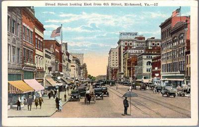 | Keywords: vcu libraries vculibraries vcu digital collections vcudigitalcollections road outdoor architecture photo border drawing skyline city Description: Broad Street, a shopping center near Monumental Church, Broad Street, which was erected on the site of a large wooden building in which the Constitution, framed in Philadelphia, was ratified in Virginia. Manufacturer: E.C. Kropp Co., Milwaukee Date Postmarked: 1927 Rights: This item is in the public domain. Acknowledgement of the Virginia Commonwealth University Libraries as a source is requested. Reference URL: dig.library.vcu.edu/u?/postcard,584 Collection: Rarely Seen Richmond: Early twentieth century Richmond as seen through vintage postcards Description: Broad Street, a shopping center near Monumental Church, Broad Street, which was erected on the site of a large wooden building in which the Constitution, framed in Philadelphia, was ratified in Virginia. Manufacturer: E.C. Kropp Co., Milwaukee Date Postmarked: 1927 Rights: This item is in the public domain. Acknowledgement of the Virginia Commonwealth University Libraries as a source is requested. Reference URL: dig.library.vcu.edu/u?/postcard,584 Collection: Rarely Seen Richmond: Early twentieth century Richmond as seen through vintage postcards |