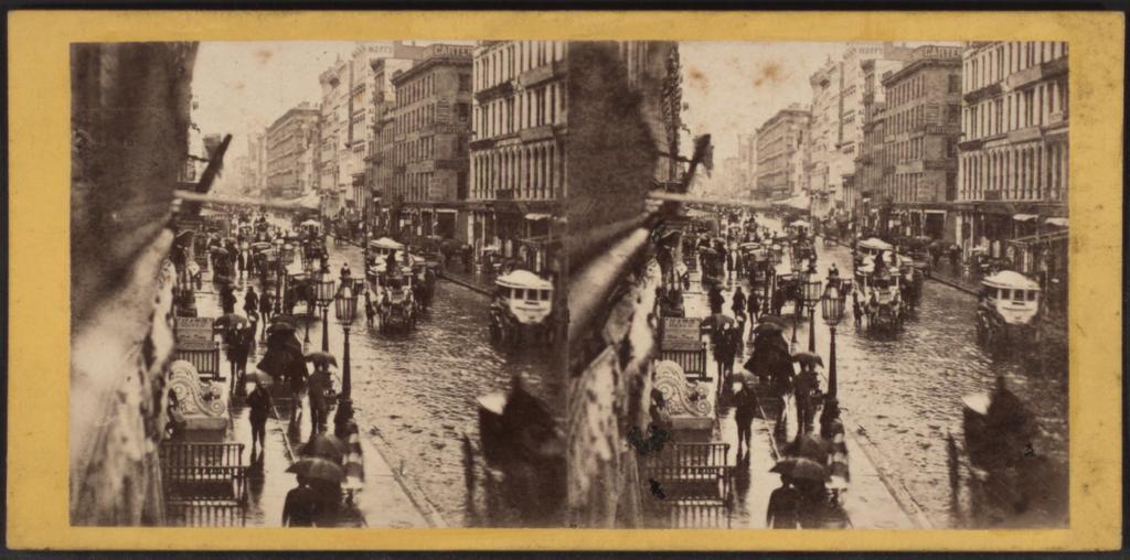 | Keywords: Broadway on a rainy day, by E. & H.T. Anthony (Firm) 6.jpg Broadway_on_a_rainy_day _by_E _ _H T _Anthony_ Firm _6 png Approx 72 000 stereoscopic views 10 x 18 cm or smaller Stephen A Schwarzman Building / Photography Collection Miriam and Ira D Wallach Division of Art Prints and Photographs MFY Dennis Coll 91-F184 G91F184_052F 624312 8-31-2005; updated 2-11-2009 PD-old Robert N Dennis collection of stereoscopic views Broadway | ||||