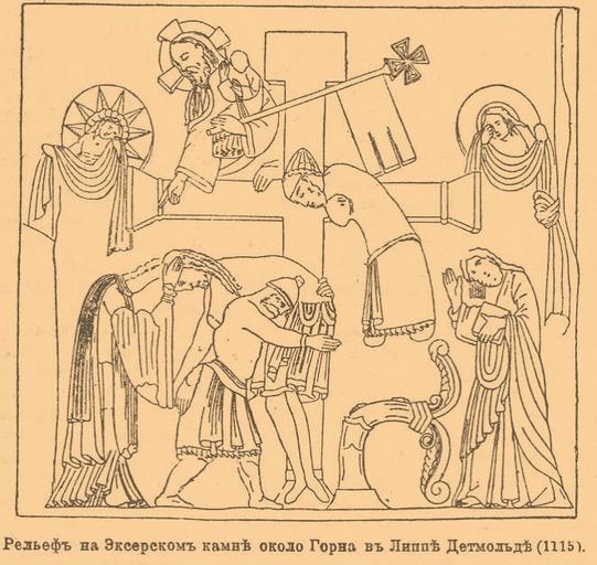 Keywords: Brockhaus-Efron Extersteine.jpg Иллюст ация к статье Эксе ские камни из энциклопедии Б окгауза и Еф она http //dic academic ru/dic nsf/brokgauz_efron/146290 ~ 1905 Б окгауз и Еф он PD-Brockhaus Efron Kreuzabnahmerelief an den Externsteinen