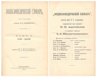 | Keywords: Brockhaus and Efron titles.jpg BadJPEG Титульные листы томов Ia и XXV «Энциклопедического слова я Б окгауза и Еф она» 1890-1907 Title pages of «Brockhaus and Efron Encyclopedic Dictionary» 1890-1907 Brockhausi ja Efroni entsüklopeedilise sõnastiku 1890-1907 köidete Ia ja XXV tiitellehed Источник/Source http //www rubricon com/about_bie_1 asp PD-Brockhaus Efron Title pages Brockhaus and Efron Encyclopedic Dictionary Title pages from Russia | ||||