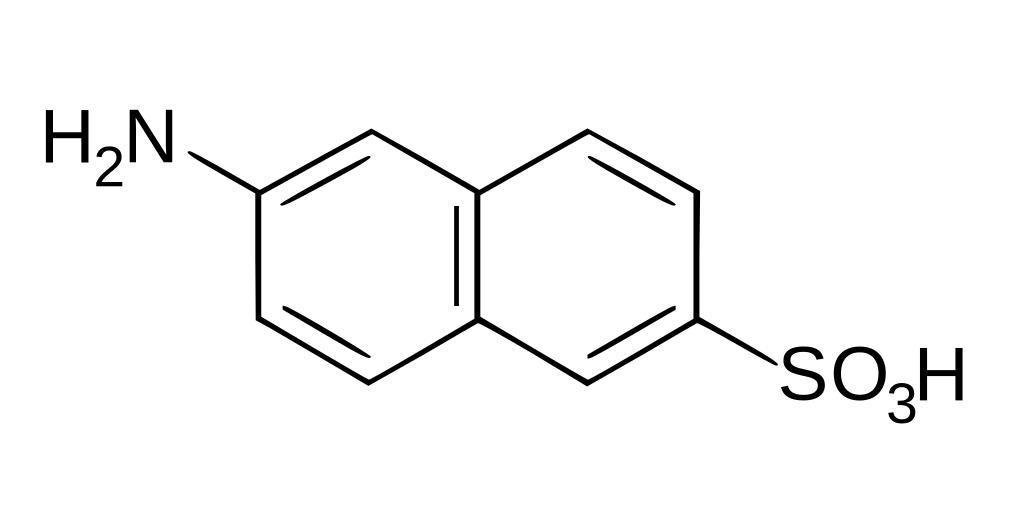 Keywords: Broenner acid.svg Skeletal formula of Broenner acid synonymous with 6-amino-2-naphthalenesulfonic acid Created using ISIS/Draw and Inkscape Own Krakatit 2008-08-30 Naphthalene sulfonic acids Naphthylamines