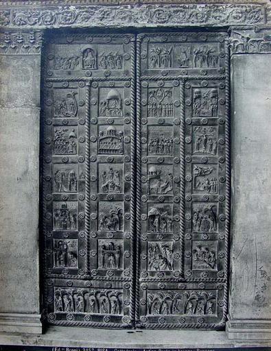 Keywords: Brogi, Giacomo (1822-1881) - n. 3457 - Pisa - Cattedrale - Antica porta in bronzo - Bonanno.jpg Giacomo Brogi 1822-1881 Pisa - Cattedrale - Antica porta in bronzo - Bonanno Numero di catalogo 3457 Si tratta della Porta di San Ranieri Giacomo Brogi 1822-1881 Pisa - Cathedral - Ancient bronze door by Bonanno Catalogue 3457 Creator Creator Giacomo Brogi PD-old-100 Historical images of Pisa by Giacomo Brogi 3457 Historical images of the Cathedral Pisa Doors Bonanno's door in Pisa Latin inscriptions in Pisa Duomo Reliefs of palms Reliefs of donkeys |