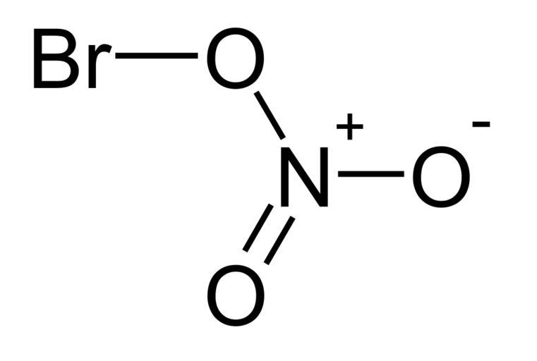 Keywords: Bromine nitrate structure.svg en Bromine nitrate de Bromnitrat own Steffen 962 2014-01-26 PD-chem Bromine compounds Nitrates Cc-zero