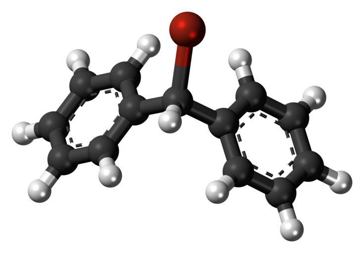 | Keywords: Bromodiphenylmethane 3D ball.png Ball-and-stick model of the bromodiphenylmethane molecule Color code 505050 Carbon C black<br> F0F0F0 Hydrogen H white<br> B42814 Bromine Br red-brown<br> 2011-08-02 own DS Visualizer Jynto talk Space-filling version cc-zero Images by Jynto Organobromides Ball-and-stick models Diphenylmethanes |