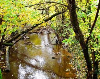 Keywords: brook rivulet trees green summer water