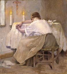| Keywords: Brooklyn Museum - Her First Born - Robert Reid - overall.jpg Artwork Creator Robert Reid Her First Born ~ 1888 oil canvas cm 94 85 4 Museum Brooklyn Museum Artwork-provenanceorcl gift Mr and Mrs Sidney W Davidson bottom left Robert Reid'88 http //www brooklynmuseum org/opencollection/objects/1163/Her_First_Born Online Collection of Brooklyn Museum; Photo Brooklyn Museum 57 96_SL1 jpg 57 96 Brooklyn_Museum-no_known_restrictions PD-old-auto 1929 Robert Lewis Reid 1888 oil on canvas paintings in the United States Genre paintings in the Brooklyn Museum Reid Females with candles in art Mourning in art Women in rooms in art Mothers in art 1880s paintings in the Brooklyn Museum |