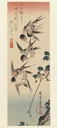 | Keywords: Brooklyn Museum - Tanzaku Four Swallows - Utagawa Hiroshige (Ando).jpg Artwork Creator Hiroshige Utagawa Tanzaku Four Swallows 1832 Woodblock color print cm 37 7 13 Institution Brooklyn Museum Brooklyn Museum location asia Artwork-provenanceorcl gift Louis V Ledoux ja signature Hiroshige hitsu ja Kiwame censor seal ja publisqher's seal Kawasho http //www brooklynmuseum org/opencollection/objects/51737/Tanzaku_Four_Swallows Online Collection of Brooklyn Museum; Photo Brooklyn Museum 41 470_IMLS_PS3 jpg 41 470 Brooklyn_Museum-no_known_restrictions PD-old-100 Utagawa Hiroshige Asian art in the Brooklyn Museum Swallows in art |
