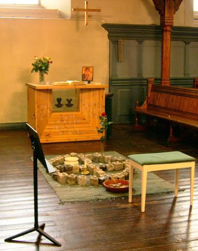Keywords: Brosteinsalteret.jpg Cobble stone altar in Our Lady's church in Trondheim Norway 2006-09 Interior of Vår Frue kirke Trondheim Altars in Norway September 2006 in Trondheim