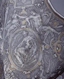 | Keywords: Bröstharnesk detaljer - Livrustkammaren - 82377.tif Arboga faktori sv Bröstharnesk i stål med med svagt spetsig buk etsad och driven dekor samt guld Tre hål för lanshake på höger bröst Bukpansar fastsatt nedtill med nya nitar Dekoren symmetriskt uppbyggd <br/>Kvinnogestalterna i bröstharneskets kartuscher är sannolikt de båda götiska amasondrottningarna Lampeda och Marpesia <br/>Rustningen består av 18 delar enligt nuvarande numrering levererades till Erik XIV 1562 Materialet är stål med etsad och driven dekor samt pålagt guld Tillverkad vid Arbogas vapenfaktori och dekorerad i Antverpen av guldsmeden Eliseus Lieberts efter förlagor från den franske konstnären Etienne Delaune Hela garnityret är dekorerat med mytologiska gestalter fjättrade fångar stridsscener och trofégrupper samt Vasavapnet tre Kronors-vapnet och Folkungalejonet <br/>Rustningen kan tex ha använts vid något av de många festtåg som kungen arrangerade både av krigisk och fredlig art Ett av dessa ägde rum efter fälttåget mot Danmark 1564 då Erik red in i Stockholm i stor triumf Han medförde både troféer och krigsfångar som utgjorde en levande illustration till rustningsgarnityrets dekor <br/>Häststjärnan levererades ett år senare 1563 och har en annan dekor den sändes som ett varuprov på dekor och Erik beställde ytterligare minst en rustning från Antwerpen När Lieberts personligen skulle leverera den nya rustningen blev både han och rustningen tillfångatagna i Danmark under pågående krig Erik försökte få rustning och Lieberts fria men misslyckades Guldsmeden David Cnoep som var verksam vid det danska hovet blev ägare till rustningen Cnoeps son sålde den till Christian II av Sachsen Rustningen finns idag i Historisches Museum i Dresden och är dekorerad med Vasa- och Tre-Kronorvapnet original caption Bröstharnesk detaljer 1562 steel size mm 400 mitt fram size mm 360 ärmhål g 1925 LRK Erik XIV av Sverige Sweden - A Royal Treasury 1988-1989 Tre Konungar på Åbo slott 1993 Örnen och de tre kronorna 2003 Parures Triomphales 2003 Sous l'égide de Mars Armures des Princes d'Europe' tid arbetstitel Armures et décors maniéristes francais 2011 Musée de l'Armée Maktspel - ett kostymdrama i Livrustkammaren 2014-2015 Livrustkammaren place of origin Antwerpen Arboga original filename lm_t11686 62742 inventory number LRK 26074 82377 CC-BY-SA <gallery caption Different images of same object > File Rustning tillhörande Erik XIV - Livrustkammaren - 22454 tif File Rustning - Livrustkammaren - 5330 tif File Bröstharnesk till Erik XIVs rusting - Livrustkammaren - 5331 tif File Erik XIVs bröstharnesk med amazoner och andra mytologiska figurer gjort 1562 - Livrustkammaren - 81645 tif File Rustning - Livrustkammaren - 82376 tif File Sadel till Erik XIV paradrustning från 1562 - Livrustkammaren - 13891 tif File Bröstharnesk till Erik XIVs rusting - Livrustkammaren - 73818 tif File Erik XIVs rustning från 1562 - Livrustkammaren - 73817 tif File Erik XIV rustning och sköld från 1562 i manieristisk stil - Livrustkammaren - 31016 tif </gallery> Eliseus Libaerts Étienne Delaune Breastplates Media contributed by LSH dim-with multiple size templates Media contributed by LSH unmatched creator Media contributed by LSH 2014-11 |
