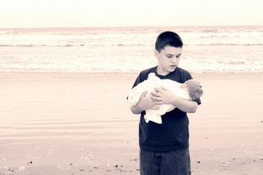 Keywords: brother newborn infant siblings sister ocean beach waves baby boy love family child cute kid happiness young together portrait sweet