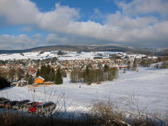 Keywords: brotterode germany landscape scenic sky clouds winter snow ice town buildings architecture urban field mountains forest trees woods cars autos country countryside nature outside