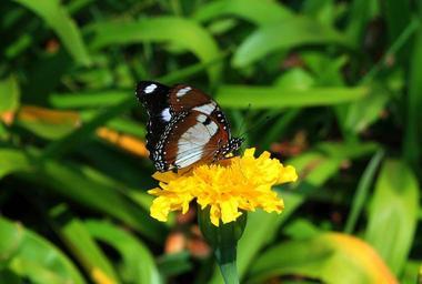 Keywords: brown butterfly butterfly insect lepidoptera brown markings white flower garden