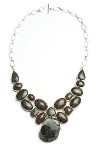 Keywords: brown jasper necklace natural gemstones gems stones handmade jewelry jewellery jewel semiprecious bezel chain silver sterling geode solar quartz huge big choker