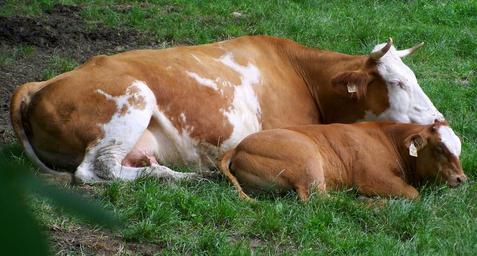 Keywords: brown and white cow borjával cattle motherly love