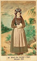 | Keywords: Brudedrakt NF.09401-007.jpg nb Brudedrakt med snørelenke fra Lærdal omkring 1870 Bildet kommer fra serien Norske Nationaldragter nr 20 fotografert av Marcus Selmer 1819-1900 Bergen Billedsamlingen Norsk Folkemuseum before 1872 NF NF 09401-007 20-brud-fra-lrdal-i-sogn-bergens-stift Creator Marcus Selmer Custom license marker 2014 05 13 PD-old-100 Uploaded with UploadWizard National costumes of Norway from Sogn og Fjordane Photographs by Marcus Selmer Lærdal | ||||