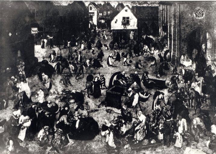 | Keywords: Bruegel Carnival Lent.JPG Artwork de Streit des Karnevals mit der Fastenzeit The Fight Between Carnival and Lent Le Combat de Carnaval et Carême Wojna Postu z Karnawałem Der Kampf zwischen Karneval und Fasten oil wood cm 118 164 en Signed P Breughel on the sign of the house on the left Owned by the National Museum in Kraków Donated to the Museum in 1937 by Stanislaw Ursyn-Rusiecki The painting was looted by the Germans during the World War II from the Museum Several similar versions of this painting were made by Pieter Bruegel the Elder which can be found in numerous museums de Serie der sogenannten bilderbogenartigen Gemälde Catalogue of paintings removed from Poland by the German occupation authorities during the years 1939-1945 1 Foreign paintings / comp Władysław Tomkiewicz; Ministry of Culture and Art Warsaw 1950 Editor Ministry of Culture and Art See also http //www mkidn gov pl/kolekcje/ Department of National Heritage Wartime losses an official webpage of Polish Ministry of Culture Art and National Heritage 75 467 1559 Creator Pieter Bruegel d Ä PD-Art Other versions <gallery> Image Pieter Bruegel d Ä 066 jpg Version in the Kunsthistorisches Museum </gallery> PD-old-100 The Fight Between Carnival and Lent National Museum in Kraków |