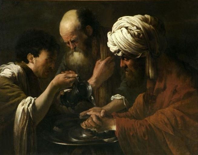 Keywords: Brugghen Pilate.jpg Artwork Creator Hendrick ter Brugghen ca 1617 oil canvas cm 100 128 Institution Lublin Museum accession number object history credit line One of the best examples of Dutch painting influenced by the art of Caravaggio Utrecht Caravaggism ed Grażyna Jakimińska Zygmunt Nasalski 2006 100 lat Muzeum Lubelskiego 1906-2006 PD-old-100 DEFAULTSORT 1617 circa; Pilate Hendrick ter Brugghen Paintings in the Lublin Museum Paintings of Pilate washing his hands |