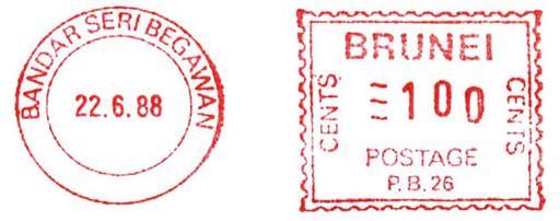 Keywords: Brunei A8B.jpg en Meter stamp catalog image Brunei type A8B Richard Stambaugh Richard Stambaugh 2005-10-01 Meter stamps of Brunei