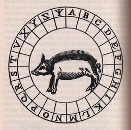 Keywords: Bruno Circe porco1.jpg it pagina dal 'Cantus Circaeus' di Giordano Brunno ruota mnemonica del porco web scanner PD-Art Giordano Bruno Philosophy books book covers single pages etc