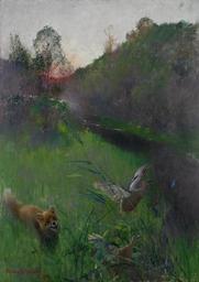 | Keywords: Bruno Liljefors - Afternoon landscape with fox and seabirds 1889.jpg Artwork sv Landskap i aftonstämning med räv och sjöfåglar en Afternoon landscape with fox and seabirds creator Bruno Liljefors 1889 Oil canvas cm 137 5 99 http //www auktionsverket com Stockholms Auktionsverk Public domain 1939 Uploaded with UploadWizard Category Foxes hunting in art Paintings of ducks 1889 paintings in Sweden Foxes hunting in art Oil paintings of birds Paintings of birds in Sweden Paintings by Bruno Liljefors with foxes Landscape paintings by Bruno Liljefors Paintings by Bruno Liljefors with birds Afternoon in art |