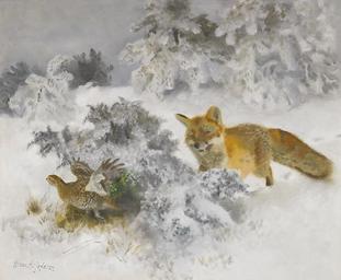 | Keywords: Bruno Liljefors - Fox and Black Grouse hen in winter landscape.jpg Artwork en Fox and Black Grouse hen in winter landscape sv Räv och orrhöna i vinterlandskap creator Bruno Liljefors Oil canvas cm 58 70 http //auktionsverket se/auction/fine-arts/2010-12-08/2523-bruno-liljefors-1860-1939-vinterlandskap-med-rav-o/ Stockholms Auktionsverk PD-old-auto 1939 Paintings by Bruno Liljefors with birds Paintings by Bruno Liljefors with foxes Black Grouse in art Winter landscape paintings Paintings of birds in Sweden Oil paintings of birds Landscape paintings of Sweden Foxes hunting in art |
