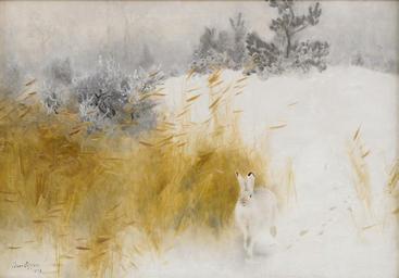 | Keywords: Bruno Liljefors - Winter Hare 1928.jpg oil canvas cm 58 83 accession number object history credit line http //auktionsverket se/auction/fine-arts/2010-12-08/2689-bruno-liljefors-1860-1939-vinterhare-signerad-och-/ Stockholms Auktionsverk PD-old-auto 1939 1928 paintings in Sweden Winter landscape paintings Paintings by Bruno Liljefors with hares |