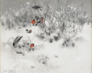 | Keywords: Bruno Liljefors - Winter landscape with bullfinches 1891.jpg Artwork en Winter landscape with bullfinches sv Vinterlandskap med domherrar creator Bruno Liljefors 1891 Oil canvas cm 40 50 http //auktionsverket se/auction/fine-arts/2013-12-03/2179-bruno-liljefors-vinterlandskap-med-domherrar/ Auktionsverket 1939 Pyrrhula pyrrhula in art Winter landscape paintings 1891 paintings in Sweden Paintings of birds in Sweden Oil paintings of birds Landscape paintings of Sweden Paintings by Bruno Liljefors with birds |