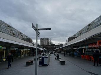 | Keywords: road outdoor architecture building structure infrastructure building It was designed by Patrick Hodgkinson[2] in the mid-1960s, based on studies by Leslie Martin.[3] It was initially planned as a private development at a time when private, mixed-use development in the UK was rare. Building started in 1967 and was completed in 1972, though the building fell some way short of its intended size. The original plan extended up to Euston Road but the Ministry of Defence would not release the site of a building they leased for use by the Territorial Army (and that still stands next to the Centre today)[citation needed]. After failing to attract sufficient private buyers on time, the residential section was leased to the London Borough of Camden for use as council housing, while the developer retained ownership of the structure and shopping areas. The exterior of the building was never painted because the Borough could not afford to complete work on the building after they took control. In Hodgkinson's design, the blocks would have been painted cream, a shade typical of the Georgian period, as a homage to the terraced houses that previously stood on the site and those that still surround it. Despite being widely disliked by those who are unsympathetic to modernist architecture, it achieved Grade II status in 2000. By this time, however, many of its shop premises were unoccupied. Plans for renovation had repeatedly been blocked by residents' committees but in November 2002, the £22 million project began. This included the painting of the blocks in their originally-planned colour and the commissioning of artist Susanna Heron to introduce water features to the central space.[4][2] The major work was completed in late 2006 with the opening of branches of several high street chain stores and restaurants. The dual management has caused problems though, as the landlord restored the structure of the estate but the council is responsible for maintenance of the residential properties - so while the concrete structure was restored, the windows remained untouched, detracting from the overall aesthetic of the development. In 2007, the council started work on replacing the windows that has resulted in the residents having scaffolding outside their flats for the second time in just a few years. Now referring to itself as The Brunswick, the centre contains 560 flats, various shops, cafés and restaurants, a Waitrose supermarket, and the Renoir Cinema (one of London's Curzon Cinemas group). It was designed by Patrick Hodgkinson[2] in the mid-1960s, based on studies by Leslie Martin.[3] It was initially planned as a private development at a time when private, mixed-use development in the UK was rare. Building started in 1967 and was completed in 1972, though the building fell some way short of its intended size. The original plan extended up to Euston Road but the Ministry of Defence would not release the site of a building they leased for use by the Territorial Army (and that still stands next to the Centre today)[citation needed]. After failing to attract sufficient private buyers on time, the residential section was leased to the London Borough of Camden for use as council housing, while the developer retained ownership of the structure and shopping areas. The exterior of the building was never painted because the Borough could not afford to complete work on the building after they took control. In Hodgkinson's design, the blocks would have been painted cream, a shade typical of the Georgian period, as a homage to the terraced houses that previously stood on the site and those that still surround it. Despite being widely disliked by those who are unsympathetic to modernist architecture, it achieved Grade II status in 2000. By this time, however, many of its shop premises were unoccupied. Plans for renovation had repeatedly been blocked by residents' committees but in November 2002, the £22 million project began. This included the painting of the blocks in their originally-planned colour and the commissioning of artist Susanna Heron to introduce water features to the central space.[4][2] The major work was completed in late 2006 with the opening of branches of several high street chain stores and restaurants. The dual management has caused problems though, as the landlord restored the structure of the estate but the council is responsible for maintenance of the residential properties - so while the concrete structure was restored, the windows remained untouched, detracting from the overall aesthetic of the development. In 2007, the council started work on replacing the windows that has resulted in the residents having scaffolding outside their flats for the second time in just a few years. Now referring to itself as The Brunswick, the centre contains 560 flats, various shops, cafés and restaurants, a Waitrose supermarket, and the Renoir Cinema (one of London's Curzon Cinemas group). |