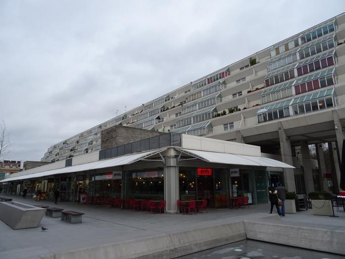 Keywords: outdoor architecture building It was designed by Patrick Hodgkinson[2] in the mid-1960s, based on studies by Leslie Martin.[3] It was initially planned as a private development at a time when private, mixed-use development in the UK was rare. Building started in 1967 and was completed in 1972, though the building fell some way short of its intended size. The original plan extended up to Euston Road but the Ministry of Defence would not release the site of a building they leased for use by the Territorial Army (and that still stands next to the Centre today)[citation needed]. After failing to attract sufficient private buyers on time, the residential section was leased to the London Borough of Camden for use as council housing, while the developer retained ownership of the structure and shopping areas. The exterior of the building was never painted because the Borough could not afford to complete work on the building after they took control. In Hodgkinson's design, the blocks would have been painted cream, a shade typical of the Georgian period, as a homage to the terraced houses that previously stood on the site and those that still surround it. Despite being widely disliked by those who are unsympathetic to modernist architecture, it achieved Grade II status in 2000. By this time, however, many of its shop premises were unoccupied. Plans for renovation had repeatedly been blocked by residents' committees but in November 2002, the £22 million project began. This included the painting of the blocks in their originally-planned colour and the commissioning of artist Susanna Heron to introduce water features to the central space.[4][2] The major work was completed in late 2006 with the opening of branches of several high street chain stores and restaurants. The dual management has caused problems though, as the landlord restored the structure of the estate but the council is responsible for maintenance of the residential properties - so while the concrete structure was restored, the windows remained untouched, detracting from the overall aesthetic of the development. In 2007, the council started work on replacing the windows that has resulted in the residents having scaffolding outside their flats for the second time in just a few years. Now referring to itself as The Brunswick, the centre contains 560 flats, various shops, cafés and restaurants, a Waitrose supermarket, and the Renoir Cinema (one of London's Curzon Cinemas group). It was designed by Patrick Hodgkinson[2] in the mid-1960s, based on studies by Leslie Martin.[3] It was initially planned as a private development at a time when private, mixed-use development in the UK was rare. Building started in 1967 and was completed in 1972, though the building fell some way short of its intended size. The original plan extended up to Euston Road but the Ministry of Defence would not release the site of a building they leased for use by the Territorial Army (and that still stands next to the Centre today)[citation needed]. After failing to attract sufficient private buyers on time, the residential section was leased to the London Borough of Camden for use as council housing, while the developer retained ownership of the structure and shopping areas. The exterior of the building was never painted because the Borough could not afford to complete work on the building after they took control. In Hodgkinson's design, the blocks would have been painted cream, a shade typical of the Georgian period, as a homage to the terraced houses that previously stood on the site and those that still surround it. Despite being widely disliked by those who are unsympathetic to modernist architecture, it achieved Grade II status in 2000. By this time, however, many of its shop premises were unoccupied. Plans for renovation had repeatedly been blocked by residents' committees but in November 2002, the £22 million project began. This included the painting of the blocks in their originally-planned colour and the commissioning of artist Susanna Heron to introduce water features to the central space.[4][2] The major work was completed in late 2006 with the opening of branches of several high street chain stores and restaurants. The dual management has caused problems though, as the landlord restored the structure of the estate but the council is responsible for maintenance of the residential properties - so while the concrete structure was restored, the windows remained untouched, detracting from the overall aesthetic of the development. In 2007, the council started work on replacing the windows that has resulted in the residents having scaffolding outside their flats for the second time in just a few years. Now referring to itself as The Brunswick, the centre contains 560 flats, various shops, cafés and restaurants, a Waitrose supermarket, and the Renoir Cinema (one of London's Curzon Cinemas group). |
