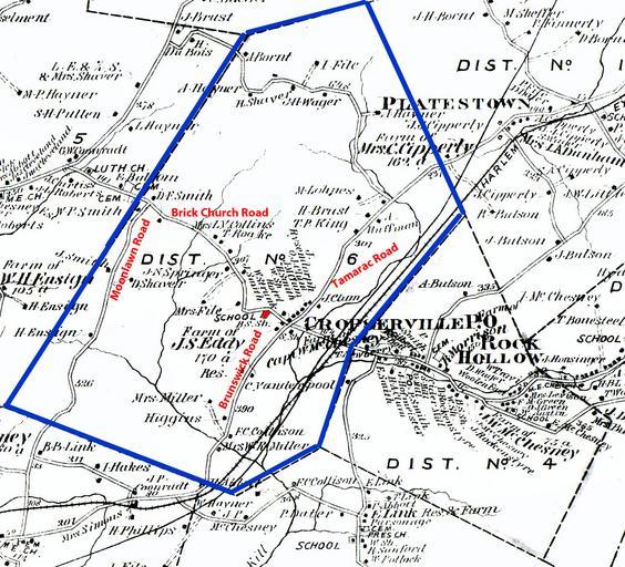 | Keywords: BrunswickDistrict6Map.jpg Map of Brunswick District 6 school district incorporated into Brunswick Brittonkill Central School District in 1955 located in Brunswick New York United States Legend ff0000 Little Red Schoolhouse property District boundary 3px solid blue ff0000 Current road name Road Rensselaer County Atlas provided by the http //www bhs-ny org/ Brunswick Historical Society 1876 F W Beers Co publisher <gallery>File Brunswick 1876 Small png Source map</gallery> names of current roads added to allow for easier identification UpstateNYer PD-old Little Red Schoolhouse Brunswick New York School districts in New York Maps by Frederick William Beers 1876 maps Old maps of New York Maps of Brunswick New York |