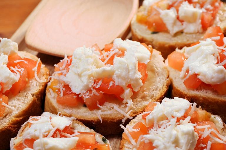 Keywords: bruschetta tomatoes frisch eat cheese mozzarella baguette bread starter garlic finger food food court delicious parmesan tasty gastronomy italian bake scalloped meal brunch