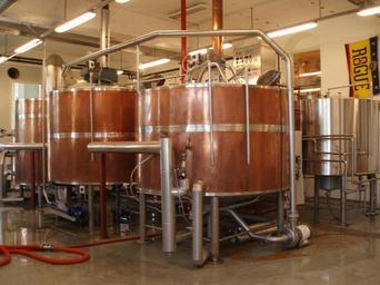 Keywords: Bryggerhus.jpg From a modern minor brewery Nøgne Ø Part of the brewing prosess - After mashing - before storing 2006-07-17 own assumed Friman Brew kettles Buildings in Grimstad Nøgne Ø