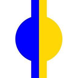 Keywords: BSicon BHF yellow-blue.svg en Used for Melbourne tram route maps to show zone 1/2 stops 2011-10-05 own Liamdavies cc-zero s/set yellow-blue