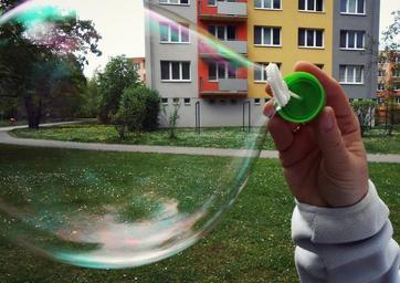Keywords: bubble bubble blower hand green grass prefabs trees macro lawn