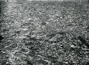 | Keywords: Bucharest in 1927.jpg Aerial view of Bucharest in 1927 The Dâmboviţa River is in the foreground cutting the picture into roughly horizontal halves The upper half of the image largely shows the central part of the city with many buildings still standing today while the lower half depicts part of the Izvor-Uranus district which has been almost fully demolished in the mid-1980s in order to make room for the Centrul Civic complex which comprises Casa Poporului the Victoria Socialismului boulevard and the blocks of flats bordering it Centrul Civic was the effort of the then-president Nicolae Ceauşescu to build an administrative centre comparable to that in Pyongyang capital city of D P R Korea PD-old ImageNote 1 1239 599 143 75 1822 1329 2 Piaţa Unirii ImageNoteEnd 1 ImageNote 2 292 462 169 121 1822 1329 2 University of Bucharest ImageNoteEnd 2 ImageNote 3 1109 687 164 91 1822 1329 2 Palace of Justice Bucharest Palace of Justice ImageNoteEnd 3 ImageNote 4 424 815 301 20 1822 1329 2 Dâmboviţa ImageNoteEnd 4 ImageNote 5 1585 626 164 25 1822 1329 2 Dâmboviţa ImageNoteEnd 5 ImageNote 6 189 603 102 50 1822 1329 2 Cercul Militar Naţional ImageNoteEnd 6 ImageNote 7 569 658 143 86 1822 1329 2 ImageNoteEnd 7 1927 1927 in Bucharest Aerial photographs of Romania Historic cityscapes of Bucharest |