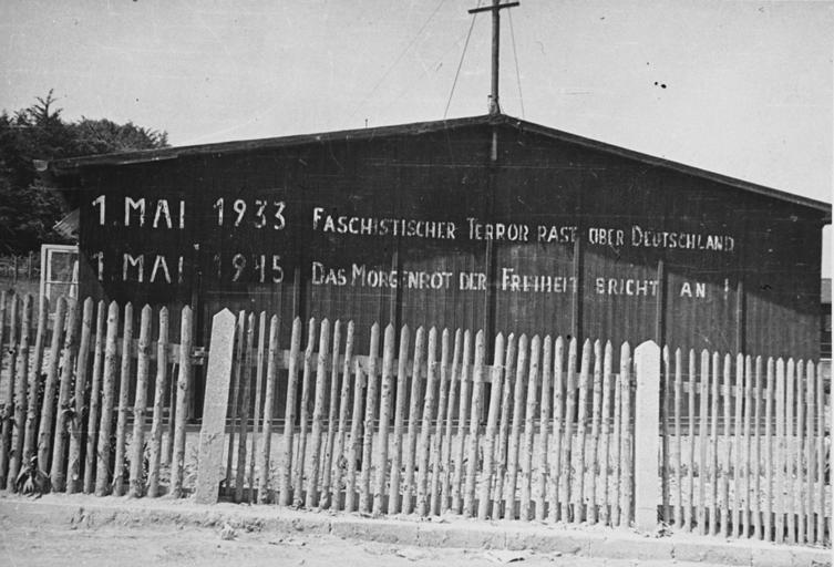 | Keywords: Buchenwald Barracks 75028.jpg View of an inscription printed in large block letters on the wall of a barrack in the Buchenwald concentration camp The inscription on the building reads 1 May 1933 Fascist terror reigns over Germany 1 May 1945 Sunrise brings the dawn of freedom The original photo caption reads Shows where people have been there since 1933 Buchenwald was in full swing about 1935 Thousands died daily from typhus dysentery and T B Most of them died in the crematory or the lime pit William B Duff served in the 117th Infantry Medical Detachment as a surgical technician He participated in the invasion of Normandy and the fighting in Northern France the Rhineland Central Europe and the Ardennes He also helped provide medical assistance to survivors of the Buchenwald concentration camp Photographed by William B Duff Buchenwald Thuringia Germany April 1945 - May 1945 http //www ushmm org/ United States Holocaust Memorial Museum courtesy of Marilyn Sutherland PD-USGov Buchenwald barracks Buchenwald liberation Images from the United States Holocaust Memorial Museum |