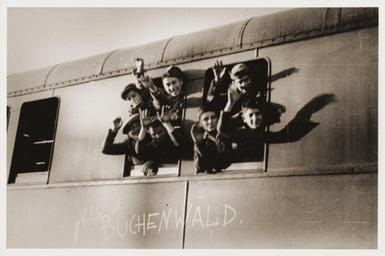 | Keywords: Buchenwald Children 26151.jpg Jewish youth liberated at Buchenwald wave from the window of a train as it pulls away from the station The train which has been marked with the words KL Buchenwald will transport the children to an OSE Oeuvre de Secours aux Enfants home in Ecouis France Pictured in the upper right hand corner is Leon Friedmann Romek Wajsman now Robert Waisman is the son of Rywka Gil and Chiel Wajsman He was born on February 2 1930 in Skarzysko Poland where his father worked as a tailor Romek had five older siblings Chaim Mottel Moishe Abram and Lea The Wajsman family was forced into the local ghetto in the fall of 1941 Romek's older brothers were sent to work in the HASAG factory camp in Skarzysko Chaim obtained information about the planned liquidation of the Skarzysko ghetto shortly before it was to occur In the early morning hours of the appointed day Chaim entered the ghetto and smuggled Romek out in the back of a truck Chaim managed to obtain a permit for Romek to work with his brothers at the HASAG plant marking aircraft shells with the factory's initials With the advance of the Red Army in the summer of 1944 the HASAG camp was closed and Romek was sent to dig anti-tank ditches in Przedborz Subsequently he was transfered to the HASAG camp in Czestochowa He remained there for several months before being sent to Buchenwald Romek was liberated in Buchenwald on April 11 1945 Shortly afterwards representatives of the OSE Oeuvre de Secours aux Enfants came to the camp and arranged for the transport of 430 Jewish children Romek among them to an OSE children's home in Ecouis France Romek was transferred from Ecouis to the OSE home at Le Vesinet near Paris In 1948 he and twenty other OSE children immigrated to Canada with the help of the Canadian Jewish Congress Romek and his sister Lea were the only members of the family to survive the war The Buchenwald children were a group of approximately 1000 Jewish child survivors found by American troops when they liberated the Buchenwald concentration camp on April 11 1945 Most of the children were originally from Poland though others came from Hungary Slovenia and Ruthenia Unsure of what to do with the child survivors American army chaplains Rabbi Herschel Schacter and Rabbi Robert Marcus contacted the offices of the OSE Oeuvre de Secours aux Enfants Jewish children's relief organization in Geneva They arranged to send 427 of the children to France 280 to Switzerland and 250 to England Vivette Samuels reverses the figures for England and Switzerland in her monograph Sauver les Enfants On June 2 1945 OSE representatives arrived in Buchenwald and together with Rabbi Marcus escorted the transport of children to France Rabbi Schacter accompanied the second transport to Switzerland Because of the difficulty in finding clothing for the children the boys were clad in Hitler Youth uniforms This created a problem for when the train crossed into France it was greeted by an angry populace who assumed the train was carrying Nazi youth Thereafter the words KZ Buchenwald orphans were painted on the outside of the train to avoid confusion On June 6 1945 the French transport arrived at the Andelys station and the orphans were taken to a children's home in Ecouis Eure The home had been set up to accommodate young children but in fact only 30 of the boys were below the age of 13 This was only one of the many problems faced by the OSE personnel who were not prepared to handle a large group of demanding rebellious teenagers who were full of anger for what they had experienced At Ecouis the boys were given medical care counseling and schooling until more permanent accommodations could be found Most of the children remained only four to eight weeks at Ecouis before being moved elsewhere and the home was closed in August 1945 Among the first to leave were a group of 173 children who had family in Palestine They were given immigration certificates and departed from Marseilles in July aboard the British vessel the RMS Mataroa The remaining boys at Ecouis were soon transferred to other residences and homes Some of the older ones were sent to the Foyer d'Etudiants located on the rue Rollin in Paris where they boarded while attending vocational training courses or working at jobs in the city Others were sent to the Chateau de Boucicaut home in Fontenay-aux-Roses Hauts-de-Seine Many of the boys came from religiously observant homes Since the OSE could not obtain kosher food for everyone they divided the children into religious and non-religious groups Dr Charly Merzbach offered OSE the use of his estate the Chateau d'Ambloy Loir-et-Cher for the summer and between 90 and 100 boys chose to go there in order to receive kosher food and live in a religious environment In October 1945 the children and staff of Ambloy were relocated to the Chateau de Vaucelles in Taverny Val d'Oise About 50 of the non-religious boys were taken to the Villa Concordiale in Le Vesinet Yvelines near Paris that housed an equal number of French Jewish orphans In the summer they went to the Foyer de Champigny in Champigny-sur-Marne Val-de-Marne In all the homes attended by the Buchenwald children vocational training as well as regular classroom instruction was offered At the same time OSE social workers made every effort to locate surviving relatives succeeding in about half the cases By the end of 1948 all of the Buchenwald children who had come to France had left the OSE fold and begun new lives for themselves Sources Hemmendinger Judith and Krell Robert The Children of Buchenwald Gefen Publishers 2000; Grobman Alex Rekindling the Flame Wayne State University Press 1993; Hazan Katy Chronologie de l'histoire de l'OSE L'action de l'OSE apres la guerre 31 December 2002 Buchenwald Thuringia Germany June 1945 http //www ushmm org/ United States Holocaust Memorial Museum courtesy of Robert Waisman PD-USGov Buchenwald children Images from the United States Holocaust Memorial Museum Peop