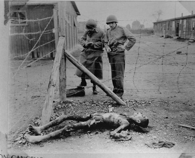 | Keywords: Buchenwald Leipzig-Thekla Corpse American Soldiers Investigate.jpg Two American soldiers conducting an investigation of Leipzig-Thekla a sub-camp of Buchenwald make notes while examining a corpse lying near a barbed wire fence Leipzig-Thekla Germany Apr 19 1945 - May 1945 http //www ushmm org/ United States Holocaust Memorial Museum courtesy of National Archives and Records Administration College Park PD-USGov Holocaust victims People and barbed wire Buchenwald Leipzig-Thekla concentration camp Images from the United States Holocaust Memorial Museum |
