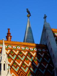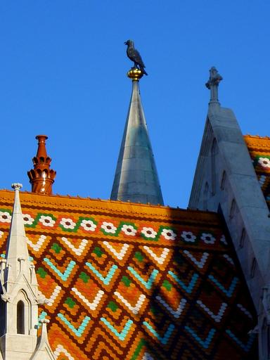 Keywords: budapest buda castle area matthias church church of our lady zsolnay roof blue sky black raven