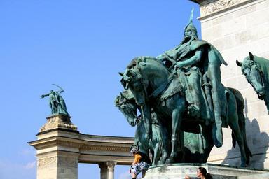 | Keywords: Budapest Heroes square 6.jpg en Statues under main column of Millenium Monument on Heroes' square Budapest Budapest Hungary Náměstí Hrdinů v Budapešti Maďarsko own Karelj 2009-04 47 30 53 96 N 19 4 41 12 E Millennium Monument Budapest -Seven chieftains of the Magyars Equestrian statue of Árpád Budapest |